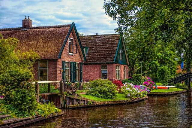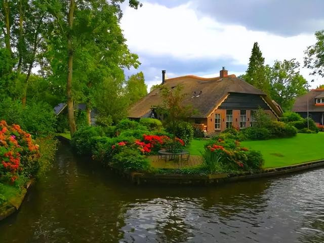 没有威尼斯的喧嚣,羊角村是荷兰人私藏的秘境。芦苇屋顶的木屋倒映在运河中,野鸭与天鹅从窗前游过,木桥低矮得仿佛专为精灵而建。租一条小船缓缓划行,两岸是绣球花丛与风车的呢喃。这里的时间慢得像一场不愿醒来的梦,连空气都带着青草与泥土的芬芳。